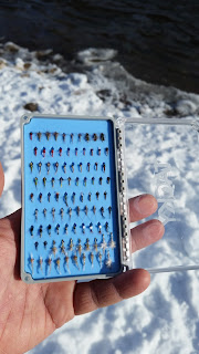 You don't hear much about fly fishing in Colorado during the winter months. But it can be pretty good, even on some of the freestone rivers during warmer periods. This trip started off with plans to primarily fish the Frying Pan below Ruedi. A quick trip by the local flyshop to get my license, some last minute flies and a quick rapport with the shop manager on how the fishing has been. Plans quickly changed when I heard how good the Fork has been fishing. I decided to go ahead and check out the Fork as I only had half a day to fish. I was glad to be on the water and even happier to be on the Fork after just a few drifts I was already hooked up with a feisty brown. The rest of the afternoon found steady action with the fish taking either an egg or the small dropper. For the dropper I mixed it up between small 20-22 pheasant tails, rojo midges, and foam wing emergers. Even though it was snowing fairly heavily the fish didn't mind. Anywhere you found slack water you could count on some fish being there. The sky started getting dark fast and the day ended to quickly, but it was a good way to start the trip.